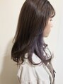耳周りをブリーチ後、パープルを。表面はツヤと透明感のあるシアーグレーに。【Insta @mana____75】