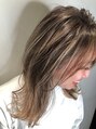 全体にランダムな太さのハイライトを入れベースを作り、上から赤みのないベージュカラーをのせました!全体ブリーチなしでもできるお洒落なハイライトカラー^^デザインカラーは私にお任せください!