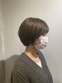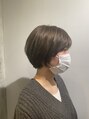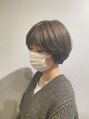 まるみがかわいいマッシュショートです。前髪はパツッとしたラインを残しつつ隙間を作ることで抜けを感じさせました。カラーは柔らかみのあるマットなベージュです。