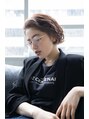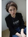 丸みのあるクセ毛風ボブをかきあげてクールカジュアルに見せたスタイルです。顔まわりのインナーカラーはベースの色と馴染むモーブブラウンにし、大人なエッジをきかせファッショナブルに決まるポイントです。