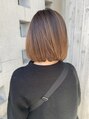 長めのボブに柔らかいベージュアッシュで女性らしさを増しました^ ^短いボブもいいですが、長めだと少し柔らかい印象に感じられます^ ^