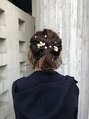 ボブからつくる結婚式ヘアセットです。ハーフアップでヘアゴムは使わず全体的にウェーブ感を与えて襟足の落ちている毛と馴染ませています。^ ^