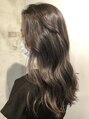 シークレットハイライトで透明感があるシナモンブラウンヘアカラーです。外巻が映えるように顔まわりにレイヤーを入れて外国人風にしています。