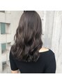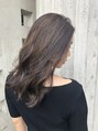 コントラストハイライトです。ベースは赤みがないダークアッシュブラウンでハイライト部分も黄色味を抑えたベージュにすることでコントラストが馴染む色味です。前髪をふわっと書き上げて流せるように作っています。