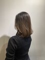 根本が伸びてきたところと、もともと入っているハイライトを生かしたグラデーションカラーです。前髪にレイヤーを入れて顔まわりから動きがでやすいミディアムヘアです。
