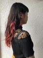 継続してインナーをブリーチして、徐々に濃いピンクを作っています。上下の境目は、徐々に重ねていって、きっちり2色に分かれず、中間色が入るようにしてあります☆