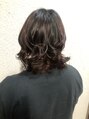 襟足は揃い目のボブ。前下がりになるようにレイヤーを入れ頭の丸みが出るようにして、顔周りはやや姫カット気味に短く切ることでスタイルのアクセントにしています。ウェーブを混ぜつつラフに巻いたら柔らかいワックスで仕上げましょう☆