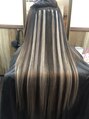 地毛をしっかり暗めにカラーしつつメッシュを入れてエクステが自然につながるようにして、シールエクステを60本を3色に分けて自然に仕上げました☆