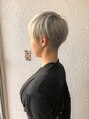根本をしっかりブリーチしたあと、毛先も少し脱染してプレーンな状態を作り、全体がアッシュ寄りのホワイトになるように2回に分けてカラーしました☆カットは安定の前下がりショートレイヤーです☆