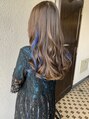 全体を暗めのアッシュに揃えておいて、インナーに青の編み込みエクステでアレンジを入れました☆
