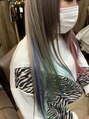 シールエクステは1本に2色までしか混ぜられないので、無理にレインボーカラーにすると持ちが悪くなります。なので、ベースカラーを多めにしてアクセントカラーを配色よく並べると