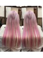 インナーにホワイトエクステをいれ、表面の桜色ピンクとメッシュにビビットピンクメッシュエクステをつけたお客様☆☆派手派手ですが、同系色の色なので統一感がでて可愛いです!♪