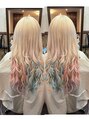 【インナーエクステ】薄ピンク×スカイブルーを入れて派手派手にした方!!!ベースの色も入れつつ派手めに☆☆
