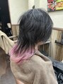 来店時からあった襟足のインナーカラーを活かす形でウルフカットに仕上げました☆セルフで染めていたりブリーチしていても、そこから色を入れても面白いので、諦めずにチャレンジ☆