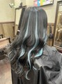 しっかり黒に映えるように薄目ブルーのメッシュも入れました☆二次元感強めなスタイルです☆