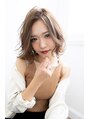 ショートボブのスタイルに少し表面に動きを出せる様レイヤーを入れることにより女性らしさを引き立たせます。ミルキーなベージュベースのカラーリングで肌色にも相性◎