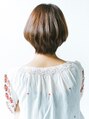 斜めバングのマッシュショートで大人かわいいスタイルです。骨格診断で頭の形をキレイに見せるようにカットしています。ナチュラルボブなので簡単スタイリング。カラーはコットンベージュで柔らかさ重視です☆