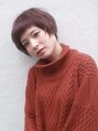 もみあげと耳まわりを長めに残したレイヤーショートスタイル。大胆に短くカットした前髪で個性的に。女性らしいピンク系カラーとの相性も◎