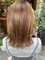 細く入れたハイライトで立体感を出したミルクティーカラー。根元を暗くすることで馴染みがよく、伸びてきた時の根元の色もカバーできます。