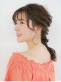 くるりんぱを重ねて作った編み下ろしヘア。顔回りがすっきり見えるので小顔効果も!ヘアアクセサリーや崩し具合によって、女子会にも結婚式にも応用できる愛されアレンジです。【EARTH●●店】