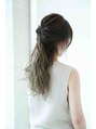 ハイライト+グラデーションで作ったスタイルをハーフアップ。下ろした位置から映える抜け感ベージュがいい感じです!毛先のカラーはブリーチ後アディクシーのスモーキートパーズでグレイ味のあるベージュカラーに!