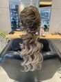 スジ系ロープ編みローポニーテールヘア