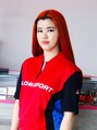 根元ギリギリは外して全頭をブリーチ。数日後に黄味鮮やかで濃いオレンジが出るよう、レッドを強めでカラーリング。直後は赤味が強めですが、数日経つと明るく鮮やかなオレンジになります。根元プリンとのコントラストもしっかり効いてます。