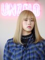バージン毛にブリーチ2回でONカラー。裾に【黒→ブロンド】のグラデーションが出るよう、ブロンドのアウターカラー部分をハサミとレザーで少しだけカット。