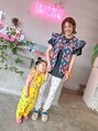 ブリーチ後、少しピーチ味を効かせたオレンジブラウンをONカラー。カットはクセと毛量を活かしたボブスタイルにお仕上げさせていただきました。