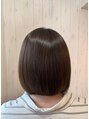 人気のオリーブグレージュで艶感が人気のあごラインボブ♪収まりも良く扱いやすいです!