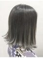 切りっぱなしスタイル。あえてカットラインを残すことで毛先に厚みが出ておしゃれ度アップ。カラーは全体的にハイライトを入れて、グレージュカラーに。
