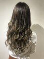 ブリーチ無しでも外国人風に!明るめの髪からトーンダウン!アッシュ系のカラーでくすみ感を強くだしてより外国人風に仕上げました。シールエクステで長さとボリューム感をだして巻き髪スタイルを楽しめます