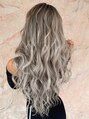バレイヤージュを施し赤味のない外国人風に!カラーはくすみ感を強調し最新のデザインカラーを外国人風に仕上げ、当店オリジナルの人毛レミーエクステをチョイスし長さとボリューム感をだしてアレンジ多彩な万能スタイルで巻き髪スタイルを楽しめます