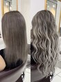 バレイヤージュを施し赤味のない外国人風に!カラーはくすみ感を強調し最新のデザインカラーを外国人風に仕上げ、当店オリジナルの人毛レミーエクステをチョイスし長さとボリューム感をだしてアレンジ多彩な万能スタイルで巻き髪スタイルを楽しめます