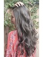 バレイヤージュを施し赤味のない外国人風に!カラーはくすみ感を強調し最新のデザインカラーを外国人風に仕上げ、当店オリジナルの人毛レミーエクステをチョイスし長さとボリューム感をだしてアレンジ多彩な万能スタイルで巻き髪スタイルを楽しめます