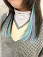 襟足のインナーにソーダとラベンダーのエクステをMIXで付けました!ストレートのスタイリングでもしっかり存在感のあるスタイルです♪