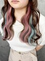 ピンクとソーダで作る個性派インナーエクステ。いつものヘアカラーにポイントで入れるだけでがらっと雰囲気が変わります♪