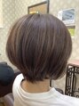 カラーだけでハイライトをいれてます。ベースとの差をしっかり計算してカラー設定してます。ヘアデザイン、骨格、仕上げ毛量、質感を踏まえた上で最高なバランスでハイライトが見えるようにいれてます。ただ、作業でいれたハイライトとはわけが違います。