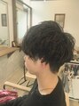 ゆるめのソフトツイストパーマで、あえてだれる質感を表現しました(^^)スタイリングにはワックスとグリースを混ぜてつやっぽく仕上げます♪