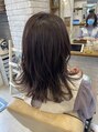 退色したときに髪色が黄色っぽくなる方にオススメ♪ラベンダー系は黄色味を消しつつ、綺麗な艶がでるのが特徴なんです!暗髪とも相性良いですね(^^)外からの自然光に照らされて、ほんのり色味を感じる☆