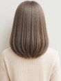 柔らかく光に透けるミルクティーベージュは、ミディアムボブと相性抜群。顔周りのレイヤーで小顔効果もプラスし、透明感あふれる大人可愛いスタイルに。ブリーチなしでも叶う、上品な発色でイメチェンを♪