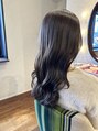 抗酸化作用の高いアドミオカラーでカラーリング【チャコール】×【ティア】で透明感あるチャコールネイビーに♪レブリン酸配合の髪質改善で憧れの艶髪◎ロングスタイルはバックスタイルを前上がりにする事で軽やかさと巻きやすさがアップ☆