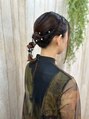 結婚式のゲストのヘアセットです。ゆるふわに飽きたあなたにオススメです。あえてふんわりさせずにキリリとまとめてみました。肩くらいの長さがあればオッケーです♪
