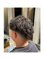 スキンフェード、ツイストスパイラルパーマ、分けやすいようにラインもいれた少し攻めたスタイルではありますがとてもカッコイイスタイルです。