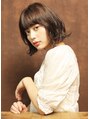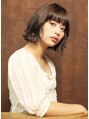 カットラインを残した前下がりボブベース。毛先にゆるいウェーブになるようにパーマをかけ上品さ残しつつも、毛先のハネで抜け感もプラス。くせ毛を生かしきれない方には、スタイリングがとても楽なオススメパーマスタイルです。