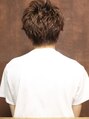 ベースはトップ短めのショートレイヤー。パーマをゆるくかけてトップのボリュームと毛流れを作る事でハチの膨らみを解消し、カラーは明るめのアッシュブラウンに。サイドをツーブロックにする事で長めだけどもったりしない20代30代の方にオススメの髪型です。