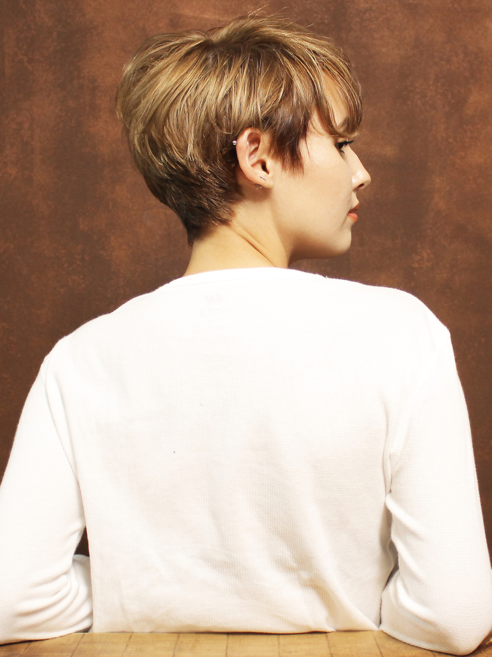 ベーシックなショートマッシュ。カジュアルになりやすいスタイルですが柔らかな毛流れや動きをつけて大人な印象に。20代30代40代と幅広くオススメできるショートヘア。
