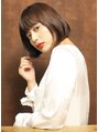 シンプルなイングラデーションボブ。前髪を眉下でカットし目を強調させることで大きく見せます。カットだけでも作れますし、より楽さを求めるのであれば緩めのパーマをオススメします!