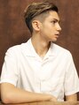 サイドを高めのツーブロックでスッキリさせ、トップと前髪を長めにしたスタイルです。パートをサイドにして後ろに流れる様に毛流れを作る事でモードな雰囲気を作っています。カラーはアッシュで外国人の様な柔らかさを出しています。