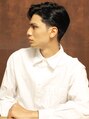 ベースは前髪長めのツーブロックの髪型。パーマをゆるくかけてトップのボリュームと毛流れを作る事でハチの膨らみを解消しています。ツーブロック部分にグラデーションをつける事で伸びてきても気になりにくくした30代40代の方にもオススメの大人の髪型です。